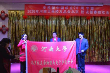宋纯鹏代表学校和校友总会对在京校友致以美好的新年祝福,对物理分会的成立表示热烈祝贺。他充分肯定了北京校友会2019年开展的工作和取得的成绩,对北京校友为母校事业发展做出的重要贡献表示感谢。宋纯鹏指出,2019年学校坚持“一条主线、两翼齐飞、四轮驱动”的发展思路,深入落实立德树人根本任务,全面深化综合改革,强力推进内涵建设,在107年办学历史中书写了浓墨重彩的一笔。他还特意提到了12月23日发生的“西兰花活动”,给他留下了深刻印象。他希望全体校友,一如既往地关心支持河大发展,出谋划策,共同把河南大学建设得越来越好!最后,他诚邀在京校友常回母校看看,并祝全体校友新年快乐,万事如意!