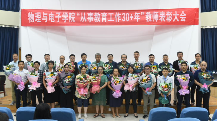 关于表彰“从事教育工作30+年”教师的决定》。学生向从事教育工作30+年的教师敬献鲜花,与会领导为受表彰的28位教师颁发荣誉证书和奖杯,并合影留念。会场气氛热烈而温馨。