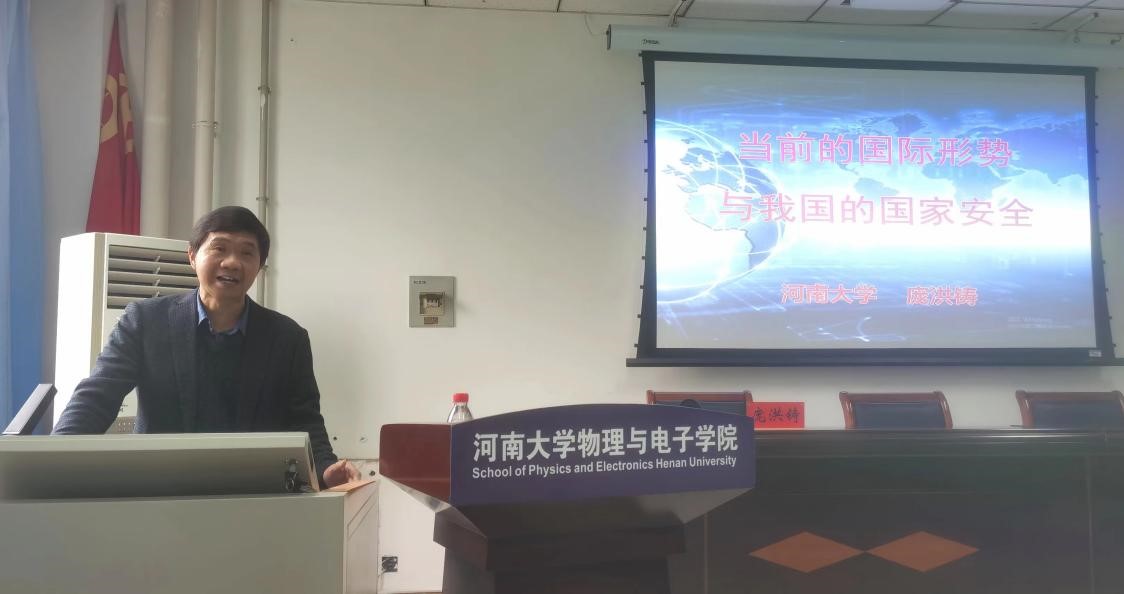 庞洪铸教授在A楼313会议室以“当前的国际形势与我国的国家安全”为题作专题报告。spbo完场比分