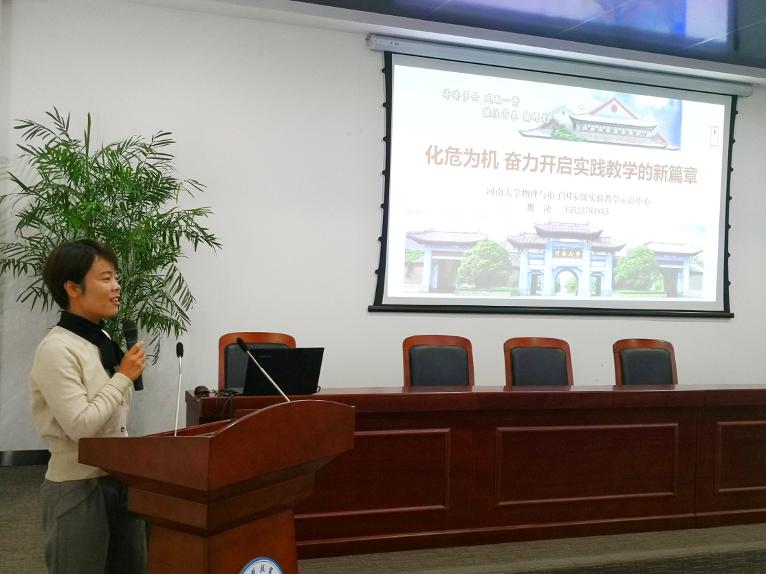 举行。在由各高校物理实验室负责人参加的“河南省大学物理实验教学创新改革座谈会”上,刘平安副教授汇报了我校创新实验教学模式,提高学生素质的改革情况,得到了与会领导的肯定。在同期举行的实验教学研讨会上,魏凌副教授介绍了我校大学物理实验教学团队“化危为机,奋力开启实践教学的新篇章”的抗疫事迹,以及实验教学标准化改革进程,得到与会代表的热烈反响。
