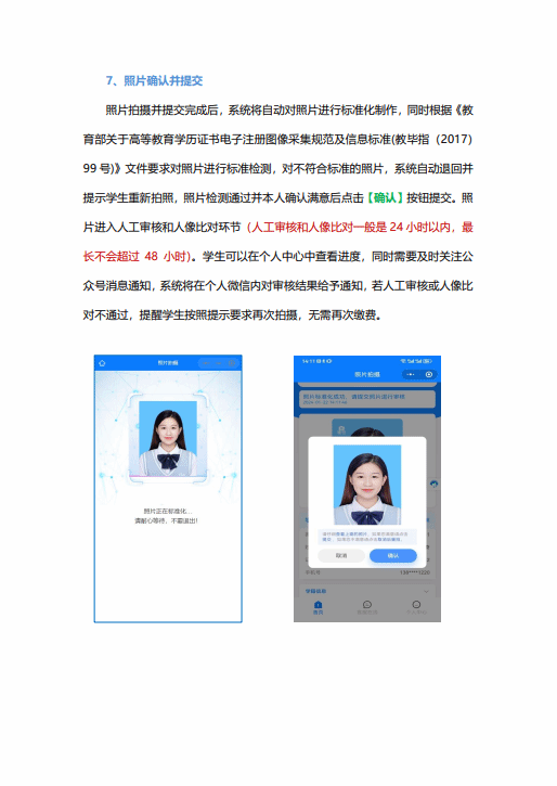 (二)该图像信息用于毕业证书制作、学信网学历电子注册,学生须严肃认真对待图像信息采集工作,在指定时间内按要求进行图像信息采集。因未按要求进行图像信息采集,导致不能正常毕业的,责任由学生本人承担。