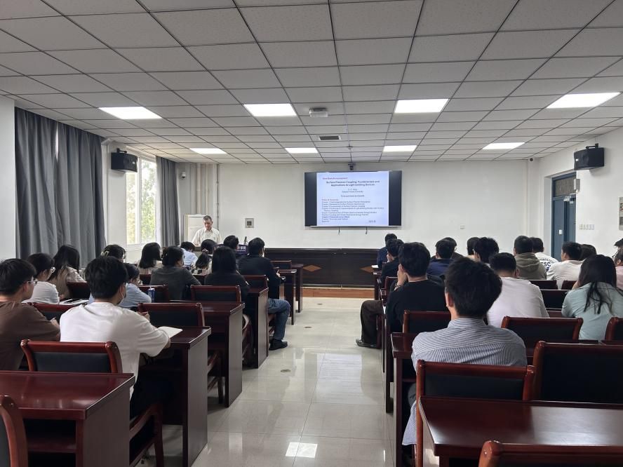 杨志忠教授作题为《纳米尺度腔体效应及其在发光与色彩转换中的应用》的学术报告。他形象生动地阐释了基于珀塞尔效应近场版本的纳米尺度腔体效应,指出与传统远场共振不同,该效应通过纳米结构近场散射显著增强光发射体性能,并强调随着纳米加工技术的突破,这一现象已从理论走向实际应用。报告中,杨教授团队通过理论建模与GaN纳米多孔结构等实验案例,生动展示了纳米腔体对Förster共振能量转移(FRET)和表面等离子体耦合的增强机制,特别分享了该技术在彩色微型LED显示领域的创新应用前景。