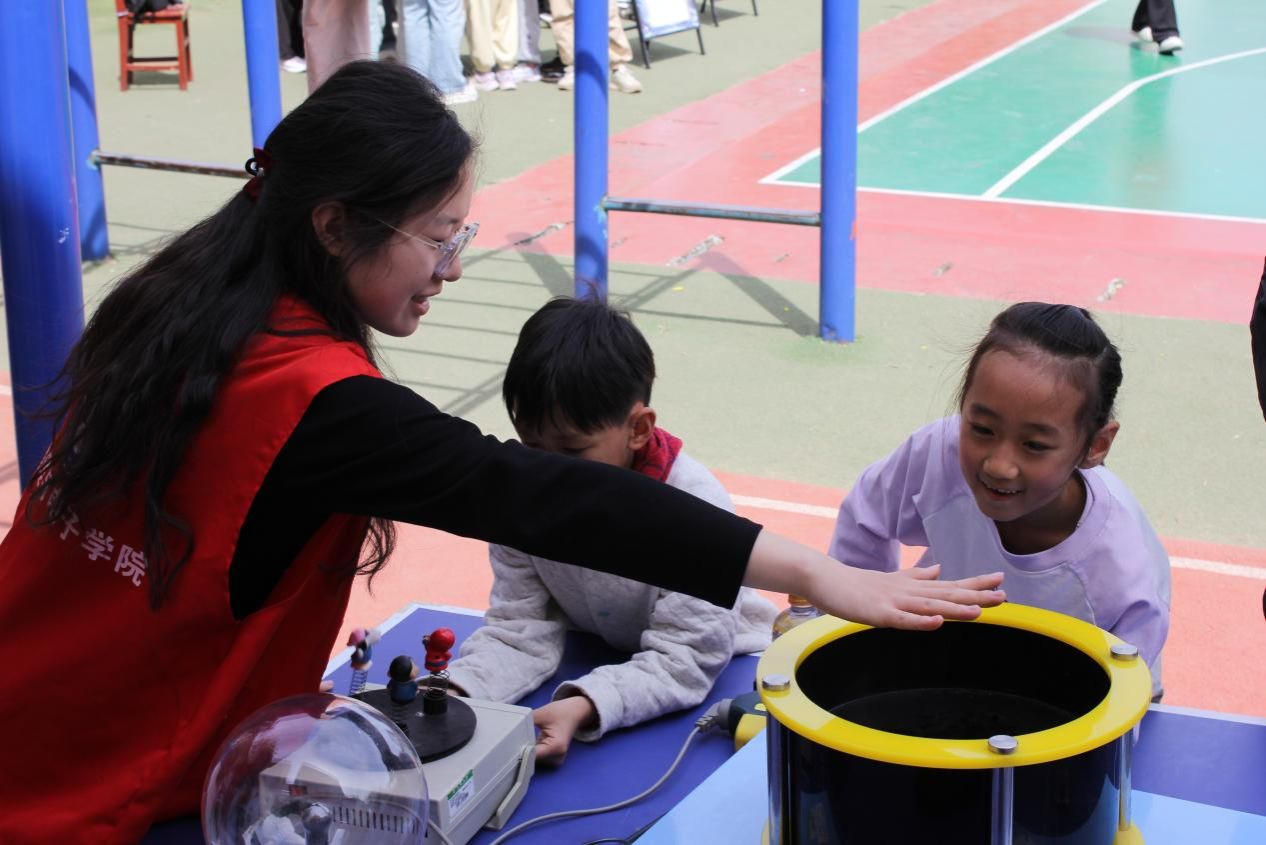 教工党支部、本科生第一、第三党支部联合青年志愿者走进河南大学附属小学,开展以“智启未来——奇趣物理科普展”为主题的物理科普活动,带领小学生近距离感受物理学魅力。