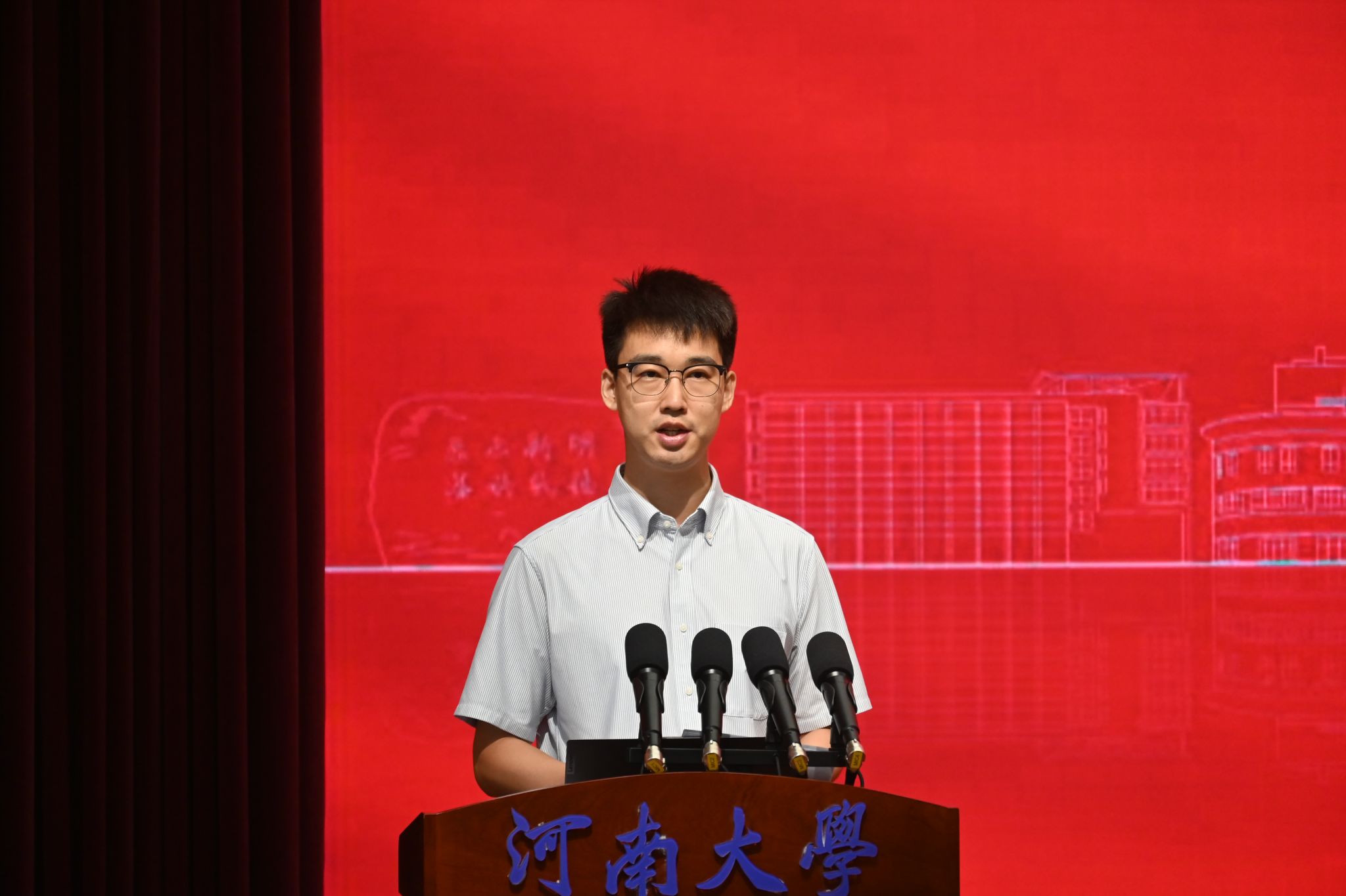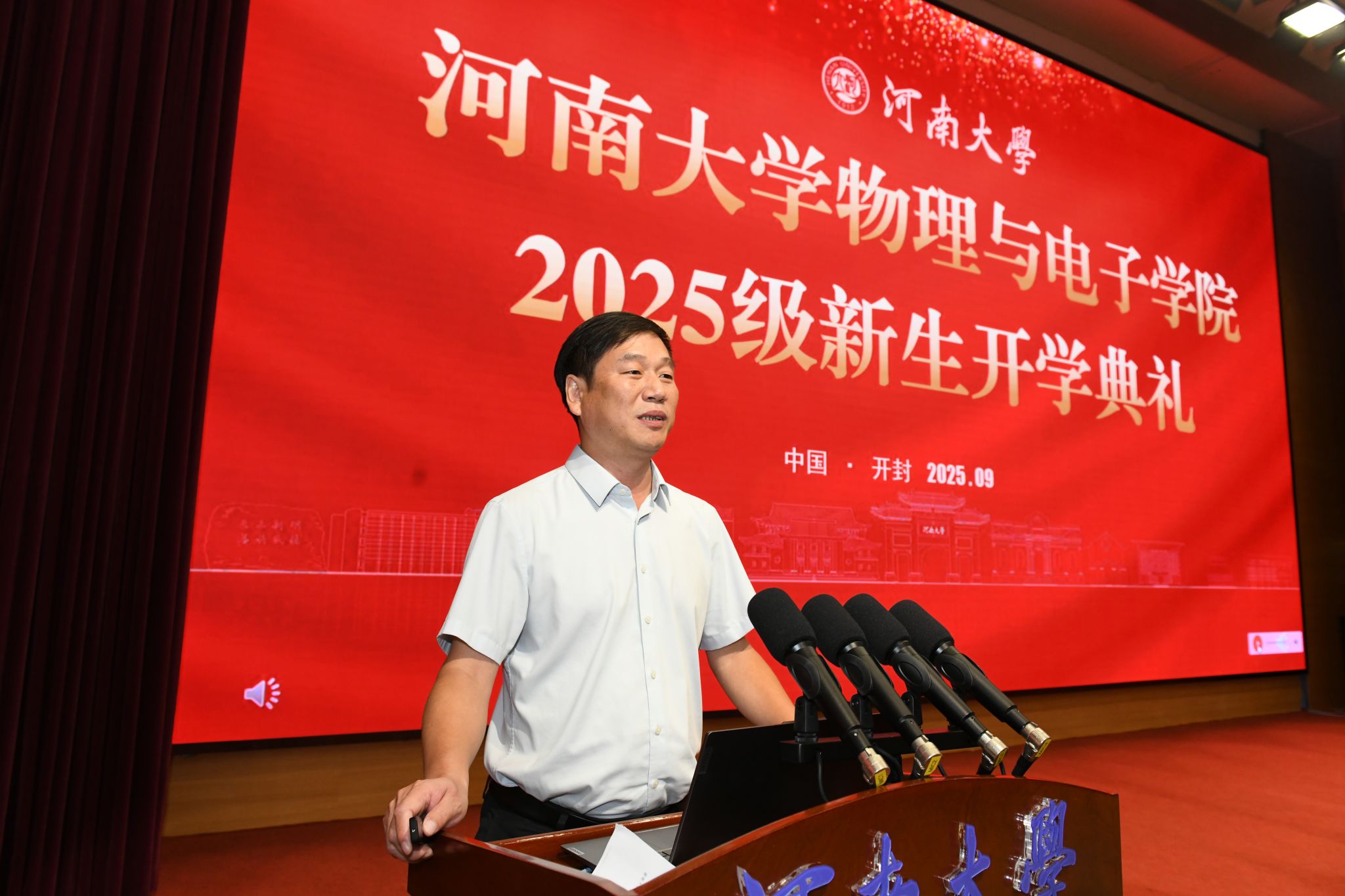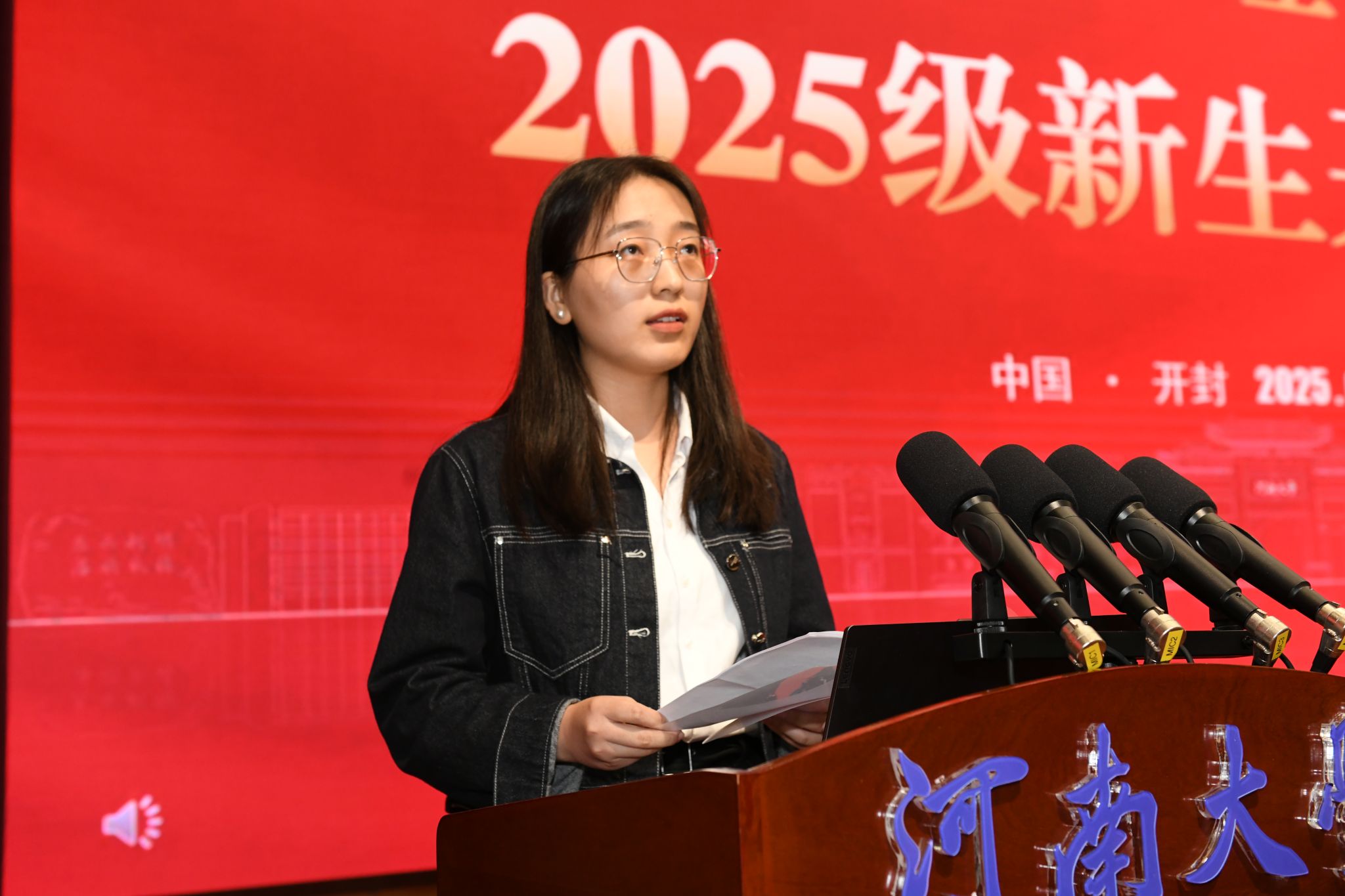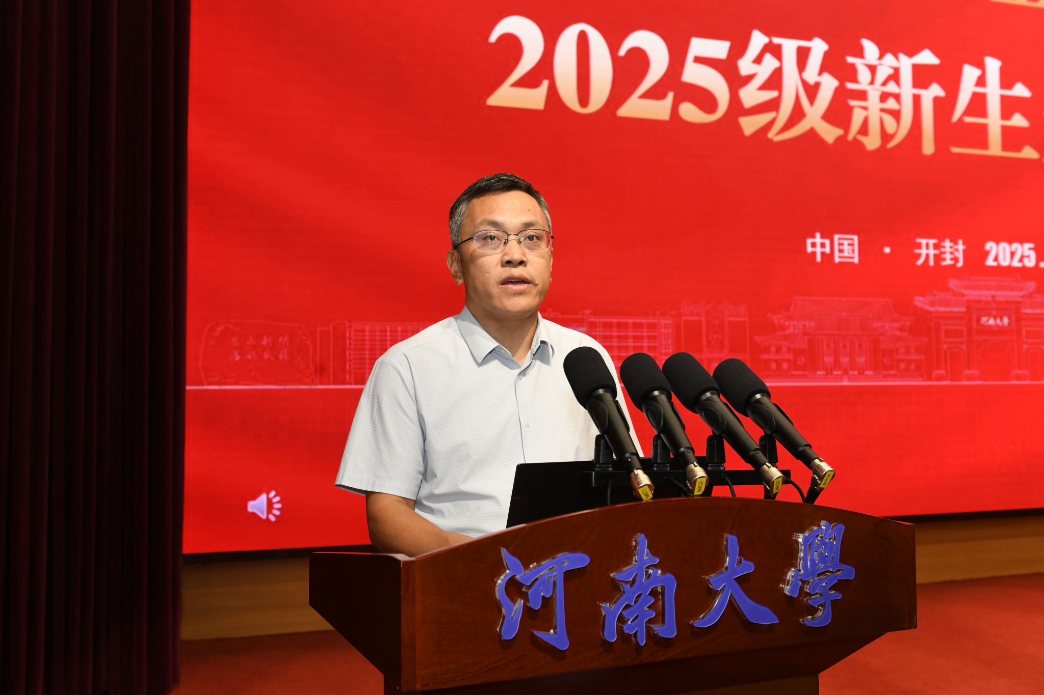 的基本情况,并对新生提出希望:一是永葆求知之心,夯实学业根基。转变角色,适应新的学习节奏,广泛涉猎知识,培养科学精神与批判性思维,积累专业基础与学术本领。二是勇立创新之志,探索未知领域。要敢于质疑、积极参与科研,培养跨学科思维,研究生更要瞄准科技前沿求突破。三是锤炼坚韧品格,乐观面对挑战。继承和发扬河大人百折不挠、自强不息的精神传统,以积极态度应对求学路上的困难,培养积极乐观的人生态度和坚韧不拔的意志品格,传承河大精神。四是胸怀家国之责,矢志科技报国,要将个人理想融入国家发展,以所学服务社会、贡献国家,成长为担当民族复兴大任的时代新人。