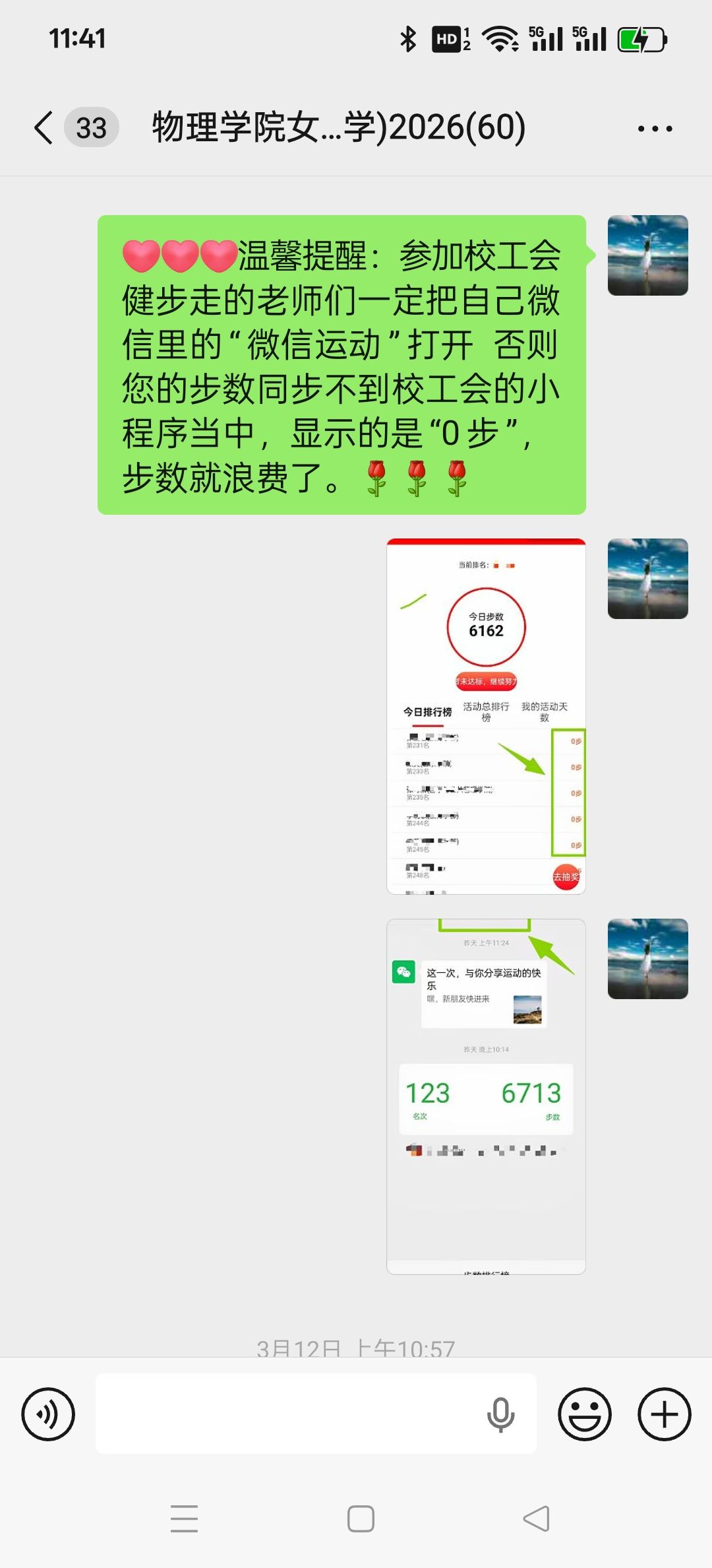 工会负责老师在线全程指导全院女教工参与此次健步走活动。全院女教工积极响应、踊跃参与。健步走活动,不仅丰富了女教工的文体生活,更引导大家树立了“健康第一”的生活理念,呈现活力满满的精神风貌。