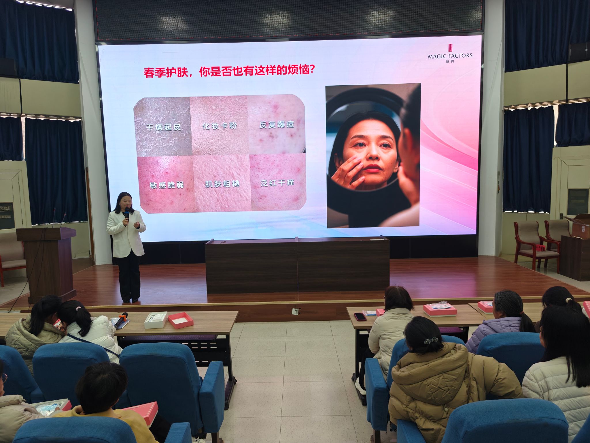 举办“向上的自己 正确科学的护肤”美容护肤品鉴会,邀请专业美容护肤老师现场授课,助力女教工提升护肤知识,绽放女性魅力。