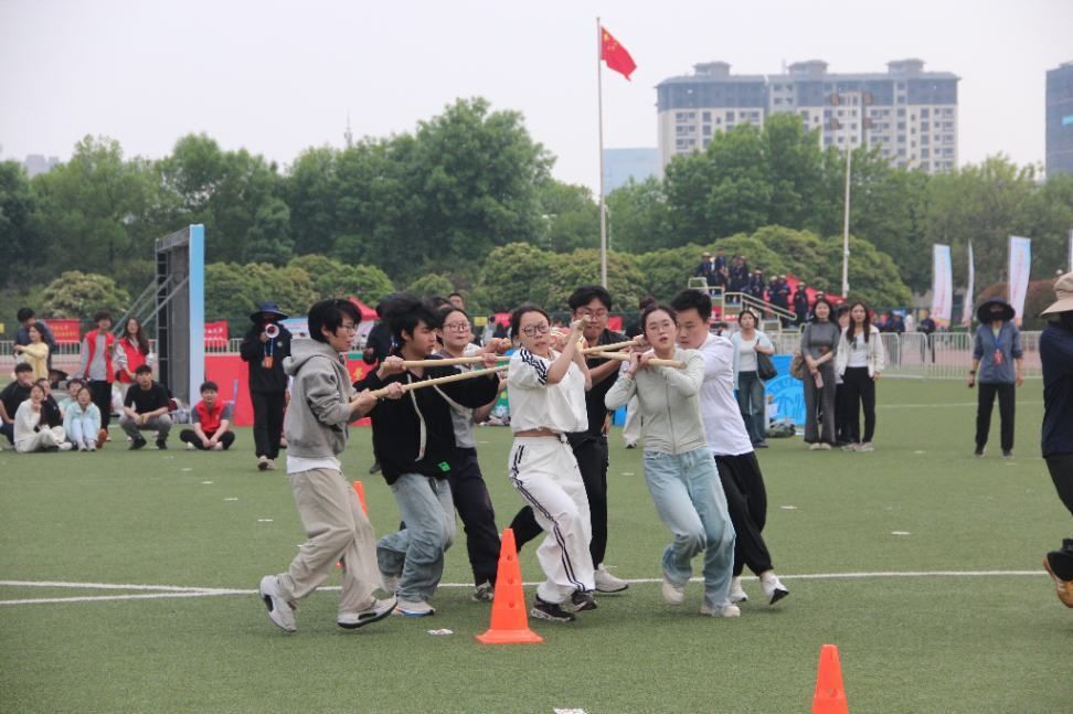 趣味运动赛场同样精彩纷呈。在“棍推乾坤”项目中,队员们兼顾速度与平衡,沉稳应战;集体跳绳比赛中,大家步调一致、轻盈灵动;“旱地龙舟”赛场上,众人齐心协力、同频共振。这些项目不仅考验个人的身体素质,更彰显了集体荣誉感与极强的团队协作能力。