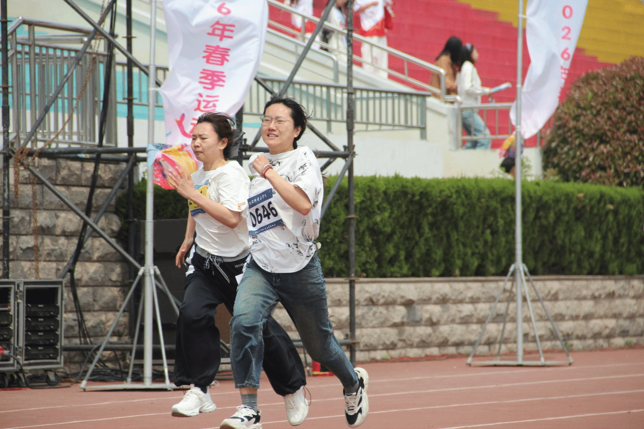 教职工赛场上,老师们褪去讲台上的严谨,化身运动健将,以饱满的热情投身各项赛事。他们奋勇争先、从容应战,不仅展现了乐观向上的精神面貌,更为学生树立了顽强拼搏的榜样。经过激烈比拼,教职工代表队最终夺得“旱地龙舟”第三名、“集体跳绳”第四名、“四人五足”第四名及“飞盘九宫格”第八名。