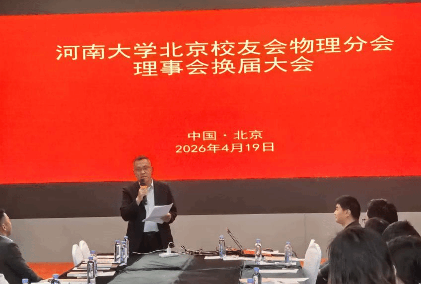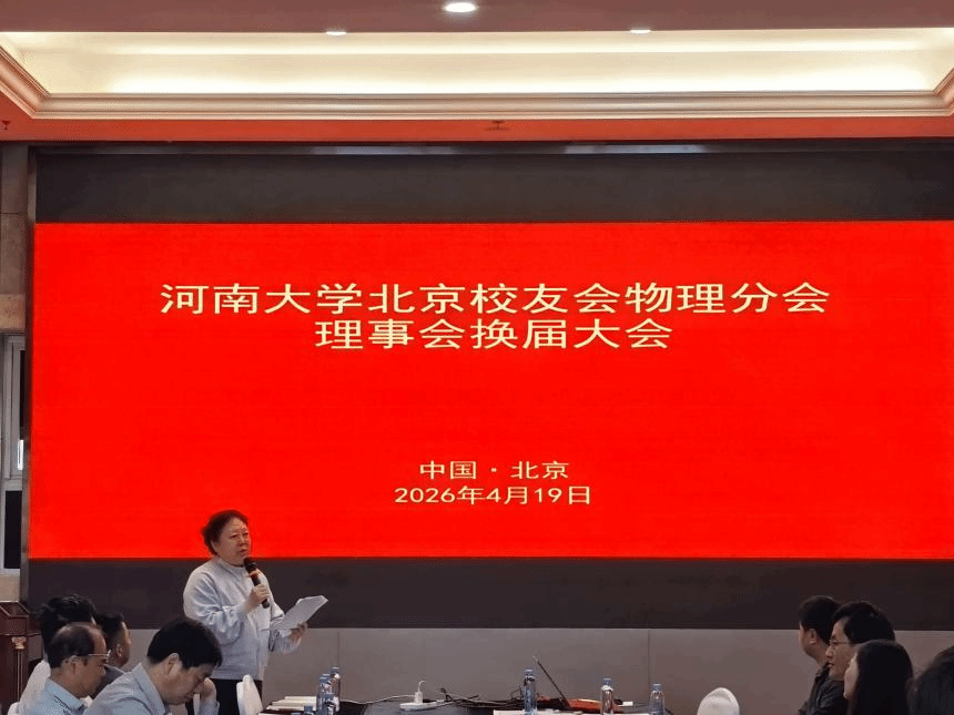 2026 年 4 月 19 日上午,河南大学北京校友会物理分会理事会换届大会在北京举行。北京校友会执行会长陶襄萍、副会长杨奕、雷景堂,spbo完场比分