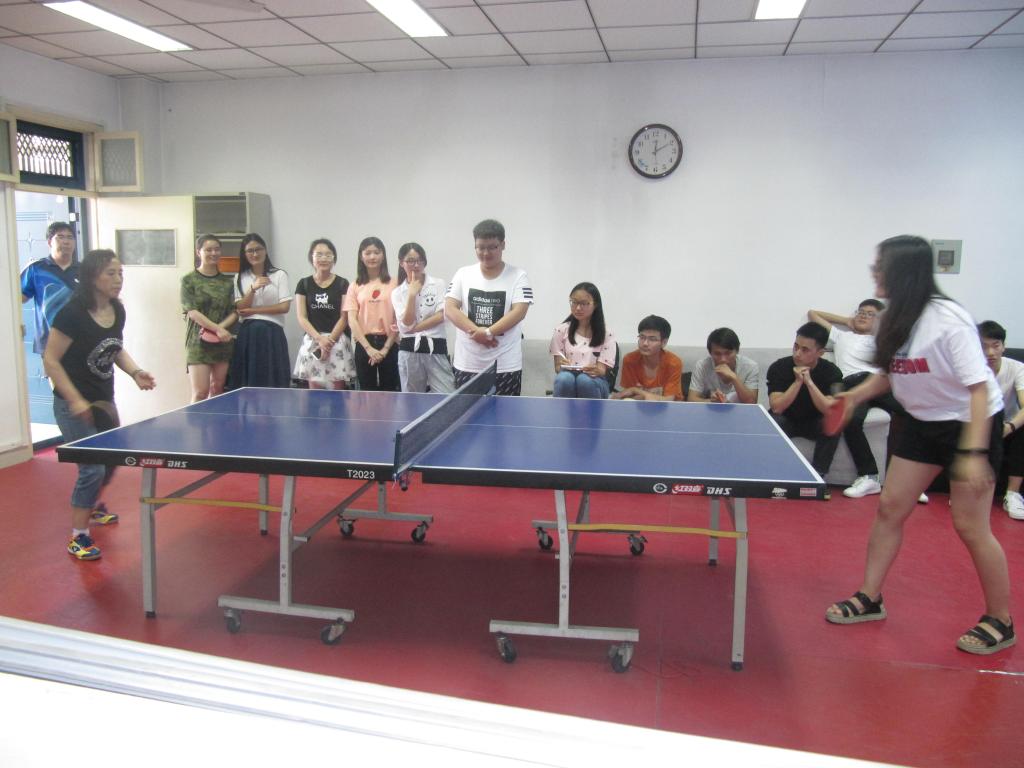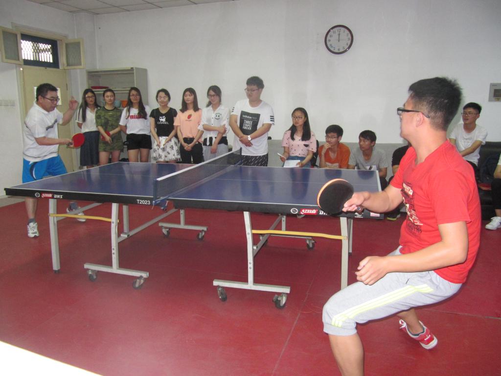 工会在物理楼A座三楼工会活动室举行了师生乒乓球友谊赛。由副院长邱永宽、副书记乔石豪及教工王孟禄、成强、郭丽、张大蔚组成的教工代表队,与来自各年级乒乓球爱好者组成的学生代表队展开了激烈对决。