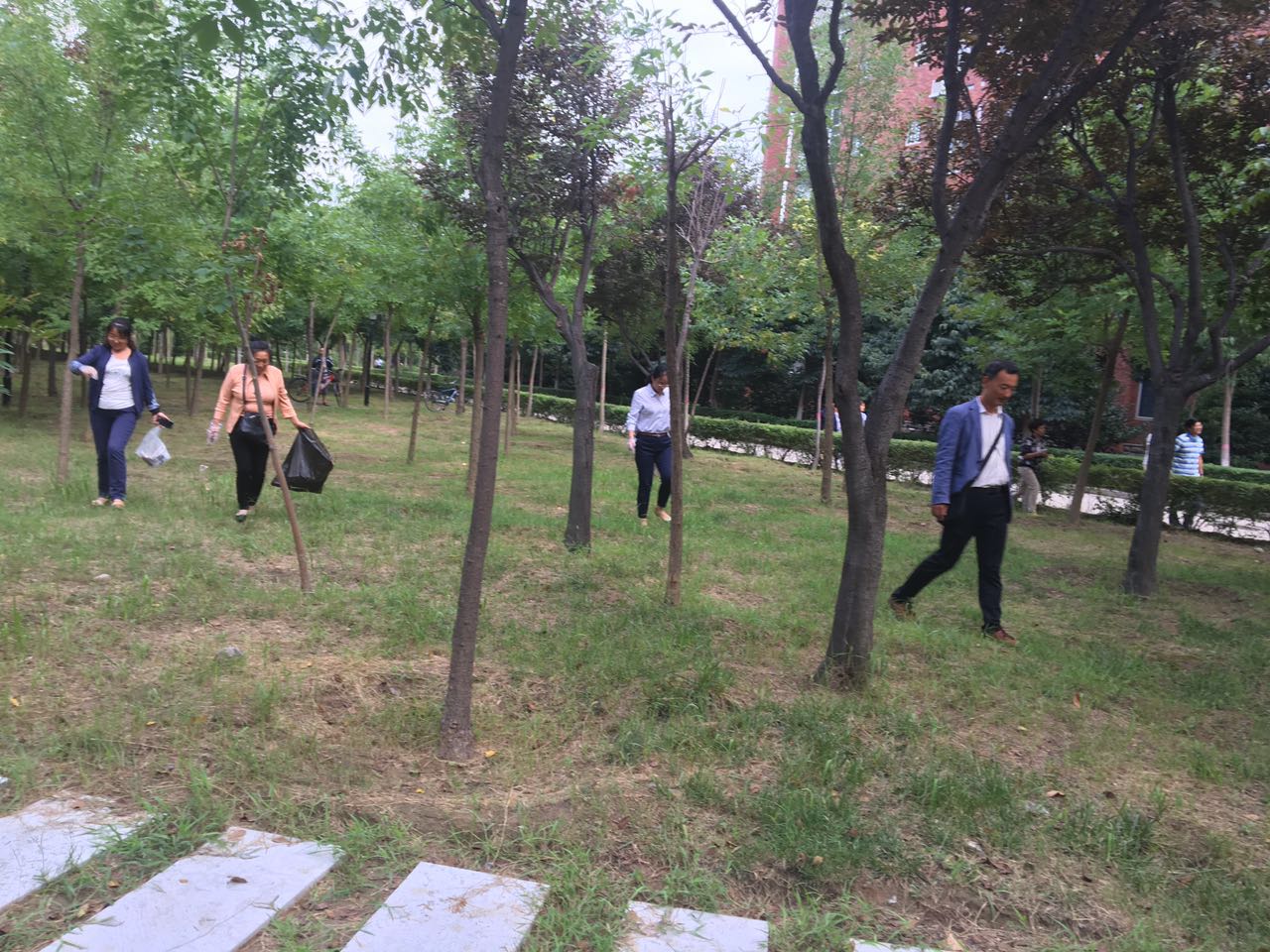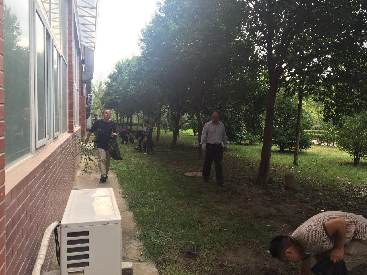 会后,全体教职工拿着清洁工具,拉网式清理了spbo完场比分