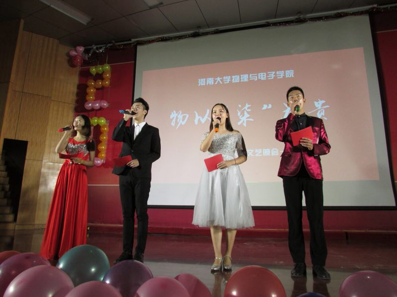 流光溢彩迎新夜,心心相印齐飞扬。晚会伴随着激情四射的开场舞拉开了序幕,本次晚会节目形式多种多样,舞蹈、歌曲、小品、相声等各色表演一应俱全,精彩绝伦。小品《老同学》因演员们夸张又贴近实际的表演逗的全场同学捧腹大笑;大一学生张嘉乐、马宇昊一段精彩的b-box表演点燃全场,赢得全场雷鸣般的掌声;乐器伴随着舞蹈,一曲乐器合奏《凉凉》让观众赏心悦目,惊艳全场;院学生会成员马颉昊和靳梦缘带来的搞怪相声《众口难调》凭借其幽默诙谐的语言搏得了观众们的阵阵欢呼,将现场气氛推向高潮。晚会期间还穿插了微信抽奖和游戏互动环节,给同学们带来了意想不到的惊喜。最后,伴随着一首大合唱《难忘今宵》,晚会落下帷幕。