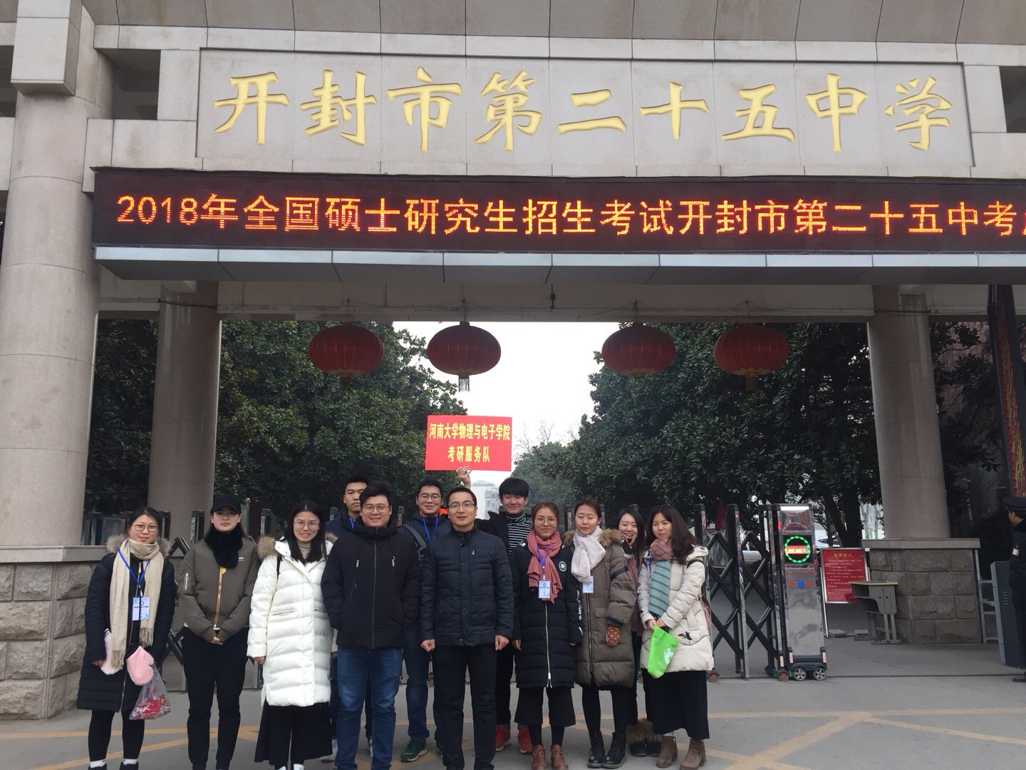 考生出现的各种突发问题。志愿服务团队在开封市二十五中、金明中学、十中、七中、五中、集英中学、河大附中各个考点分设服务站,准备了牛奶、巧克力、热水等物品,提醒考生检查考试证件是否带齐,帮助考生缓解紧张情绪,鼓励他们沉着冷静,发挥出自己最好的水平。乔石豪书记鼓励考生要相信自己,沉着应考,并感谢考研服务队同学的辛勤付出。