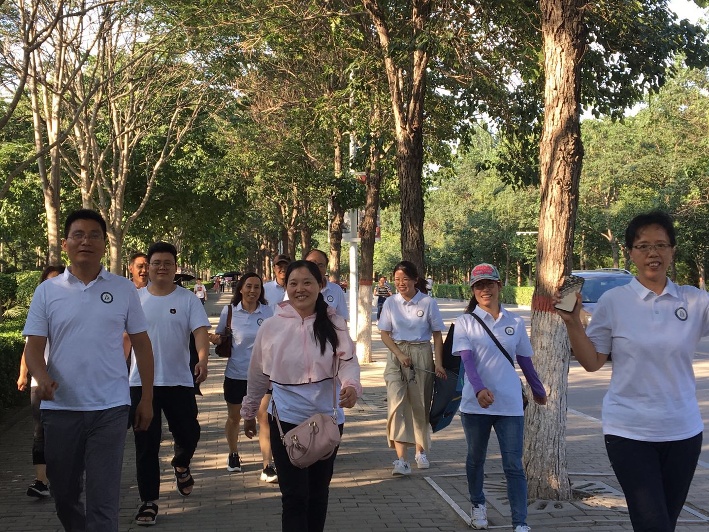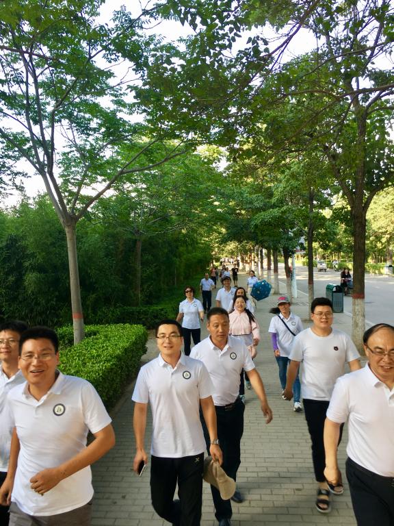 楼前广场。老师们个个精神饱满、热情高涨、步伐矫健,一路上欢声笑语、你追我赶,行走于天然“氧吧”间,充分感受到了在美丽的河大校园里运动的舒适和惬意。