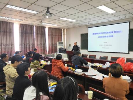 程纲在报告中首先介绍了课题组的研究方向与特色,分享了其研究团队在“摩擦纳米发电机”领域取得的丰硕成果。他着重讲述了利用脉冲式摩擦发电机设计高储能效率的无源电源管理电路以及自驱动CO2气敏传感器等方面的最新进展。最后表达了通过与“电子信息”专业背景的青年教师紧密合作来实现更大突破的意愿。程纲的报告激发了与会老师的广泛兴趣,大家纷纷就各自关心的话题进行了热烈讨论。持续两个多小时的午餐会在轻松愉快的气氛中圆满结束。