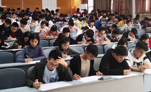 组织2019级新生在金明综合楼进行安全知识测试。考试现场,只听见笔尖沙沙的答题声,同学们沉着冷静,认真答题。