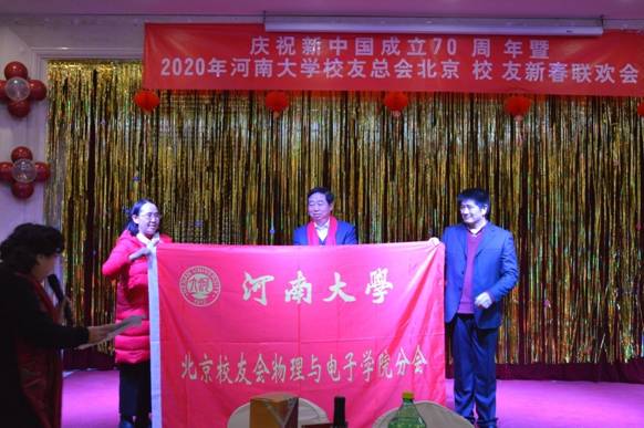 宋纯鹏代表学校和校友总会对在京校友致以美好的新年祝福,对物理分会的成立表示热烈祝贺。他充分肯定了北京校友会2019年开展的工作和取得的成绩,对北京校友为母校事业发展做出的重要贡献表示感谢。宋纯鹏指出,2019年学校坚持“一条主线、两翼齐飞、四轮驱动”的发展思路,深入落实立德树人根本任务,全面深化综合改革,强力推进内涵建设,在107年办学历史中书写了浓墨重彩的一笔。他还特意提到了12月23日发生的“西兰花活动”,给他留下了深刻印象。他希望全体校友,一如既往地关心支持河大发展,出谋划策,共同把河南大学建设得越来越好!最后,他诚邀在京校友常回母校看看,并祝全体校友新年快乐,万事如意!
