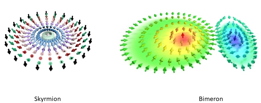 斯格明子(Skyrmion)是一种新奇的拓扑自旋结构,具有尺寸小、稳定性高、易操纵等特点,被认为可能用作下一代电子器件,实现高密度、低功耗信息存储等功能。在块体材料和金属多层结构中,斯格明子具有旋转对称性,中心到边界的自旋方向缓慢渐变直到自旋翻转。但在二维磁性材料LaCl和铁电材料In2Se3结合的双层范德瓦斯材料中,斯格明子受到平面各向异性影响而以新的磁构型Bimeron形式存在,这种新的自旋构型的产生和消失可以通过操控电场实现,其在双层范德瓦斯异质结中的运动可通过外加自旋流实现。此项研究为二维材料异质结构中斯格明子的产生与操控提供了理论基础。