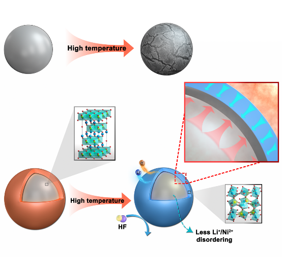白莹教授课题组在锂离子电池界面调控领域取得新进展,相关成果以“Enhancing the structure stability of Ni-rich LiNi0.6Co0.2Mn0.2 cathode via encapsulating in negative thermal expansion nanocrystalline shell”为题在《Nano Energy》上发表。我校硕士研究生杜楷为论文第一作者,赵慧玲博士和白莹教授为论文共同通讯作者。
