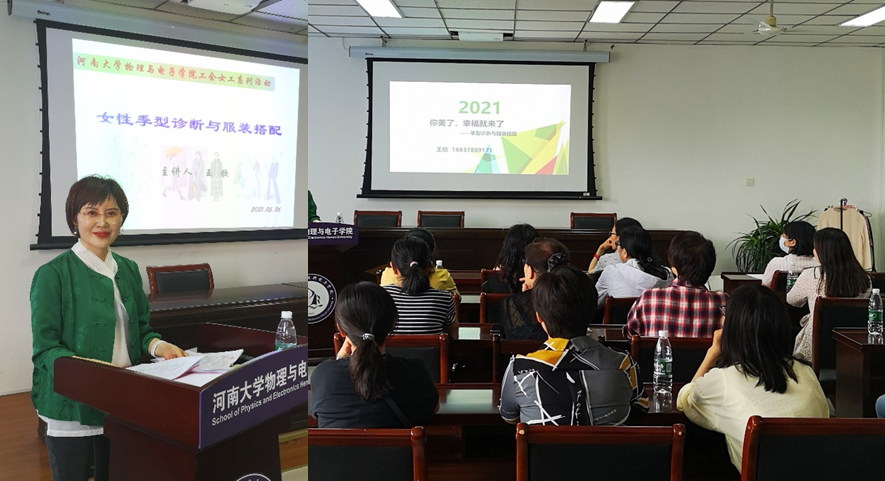 A313会议室分别作了“女性季型诊断与服装搭配”与“插花艺术与花艺设计”两场专题讲座。