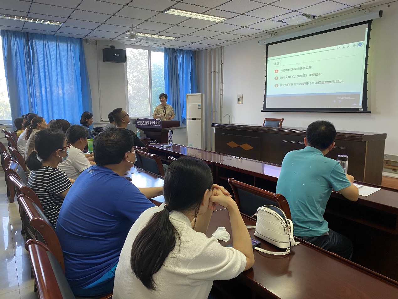 康缈老师以“两性一度”的“金课”标准作为出发点,结合建设内容全面介绍了一流本科课程建设的实践经验以及课程思政的提出背景、育人模式和相关优质课程。她以《大学物理》课程为例,结合智慧教学工具和与会老师分享了线上线下混合式课程教学设计,翻转课堂教学实施技巧以及课程思政的多个教学案例等具体问题。与会老师对一流本科课程的建设有了更深入的了解,增强了课程思政建设意识。