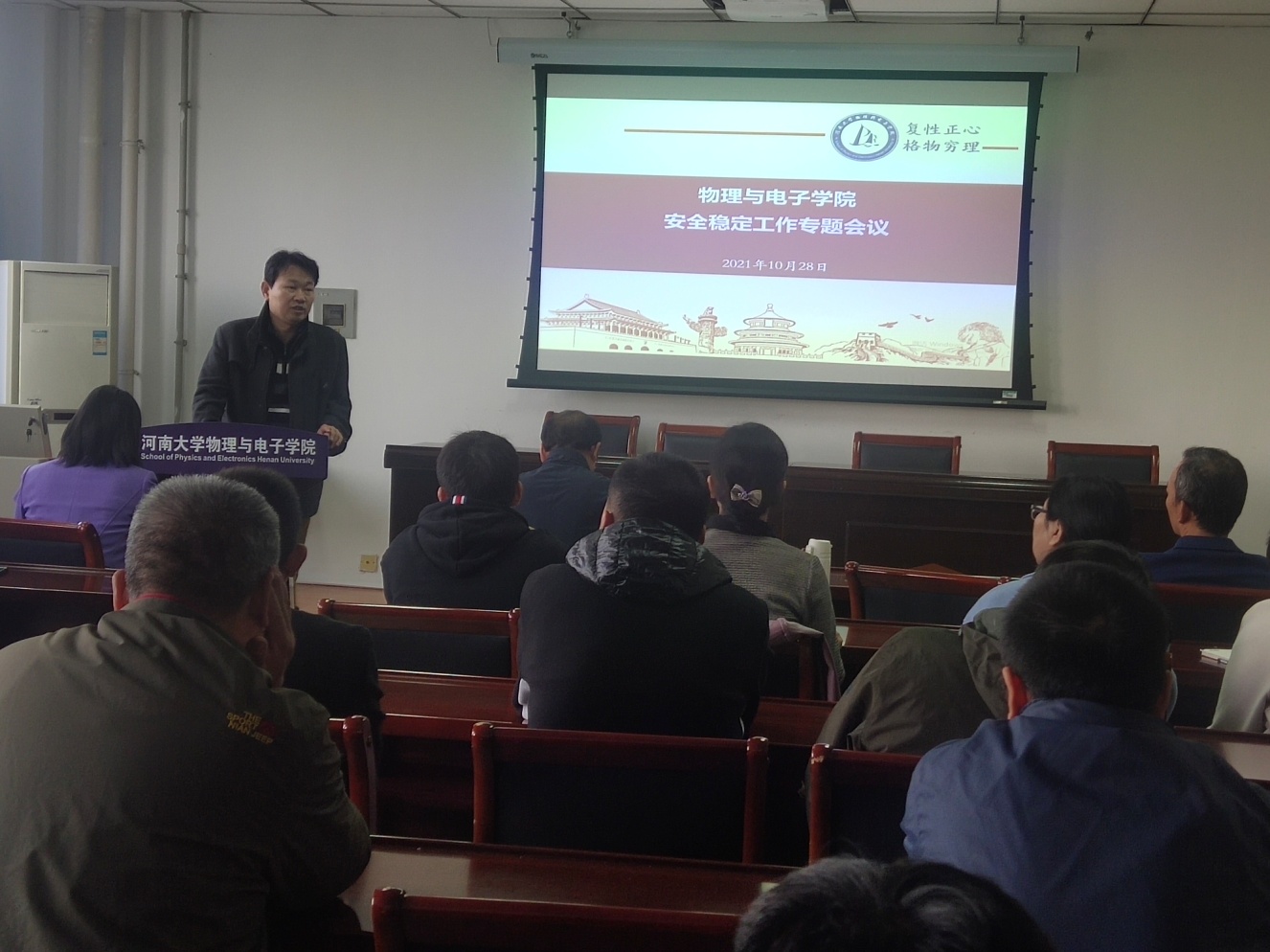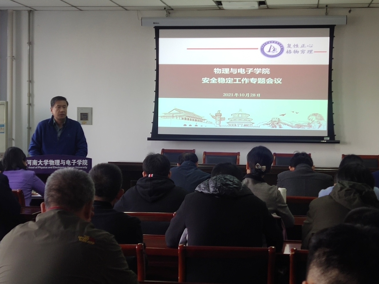 副书记刘寒冰从学生疫情防控、人身财产安全、网络舆情应对、特殊群体学生管理等多角度分析了学生安全存在的隐患,要求辅导员把日常安全工作做扎实;要求全体教师筑牢思想政治防线,坚守意识形态阵地,筑牢校园安全防线。