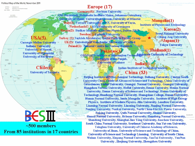 高能物理研究所、清华大学、北京大学、中国科学技术大学等。