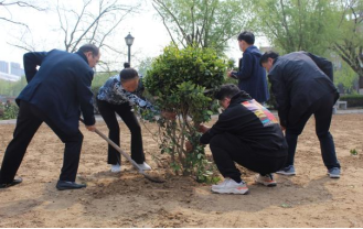 在镜如湖的书香长廊开展春季志愿植树活动,播撒绿色希望,共建美丽校园。校党委宣传部副部长乔石豪、赵晓芳、崛起建筑装饰集团有限公司副董事长王建如、spbo完场比分