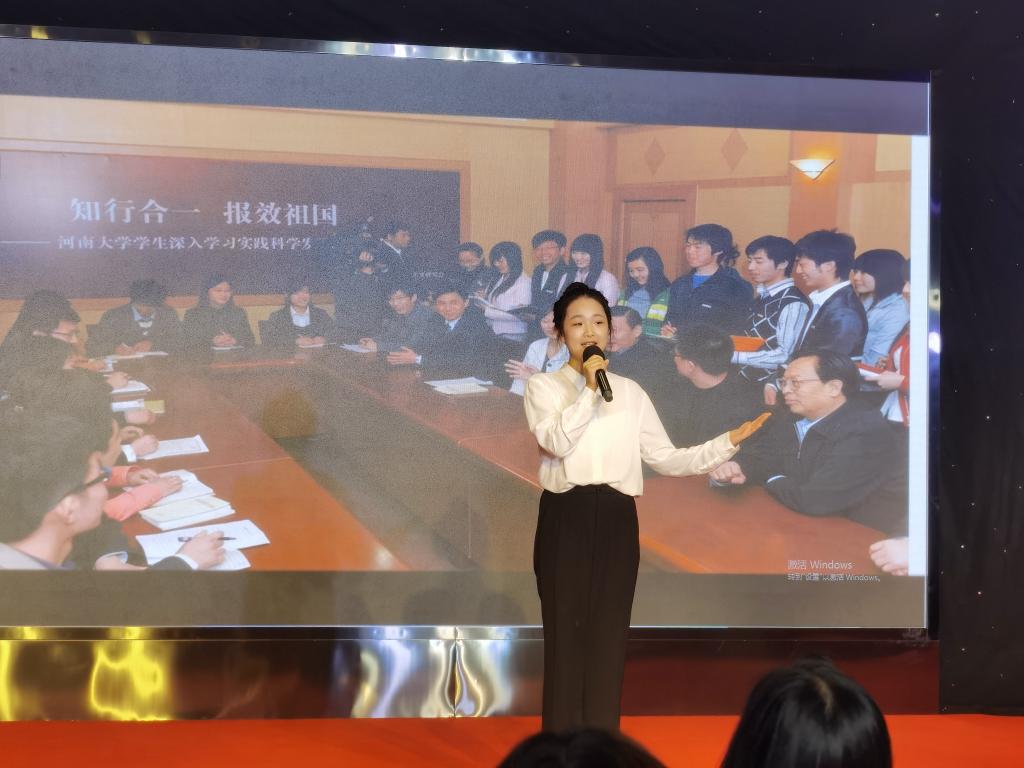 选手于若溪以“不忘初心担使命 百年河大启征程”为题,讲述了河南大学时刻牢记习近平同志莅临河南大学考察指导工作时的殷切嘱托,不忘初心,砥砺奋进,在创建一流大学的道路上步伐坚定、自信从容,带领全校师生以“逆境”铸就“一流”,以世纪沧桑书写传奇史诗,以踔厉奋发的姿态持续绘就河南大学“继往开来”的壮丽华章。