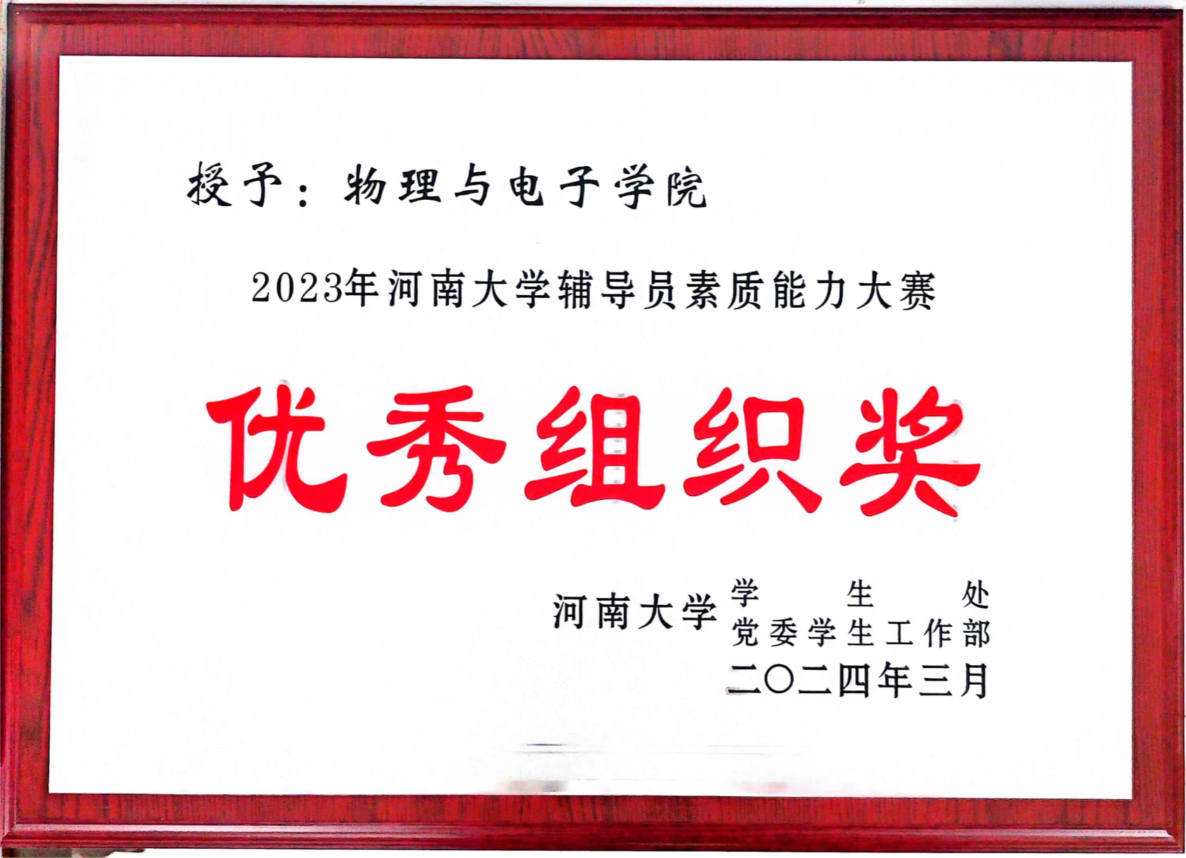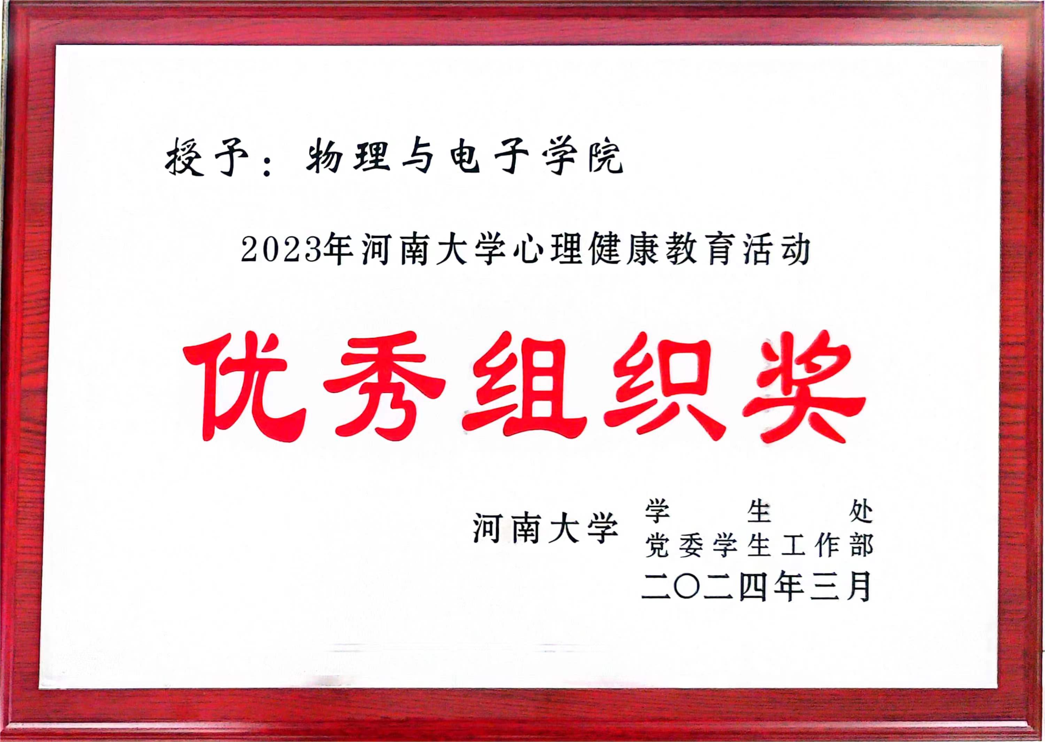 荣获2023年度就业创业工作先进单位、2023年河南大学心理健康教育活动优秀组织奖以及 2023年河南大学辅导员素质能力大赛优秀组织奖三项奖项。