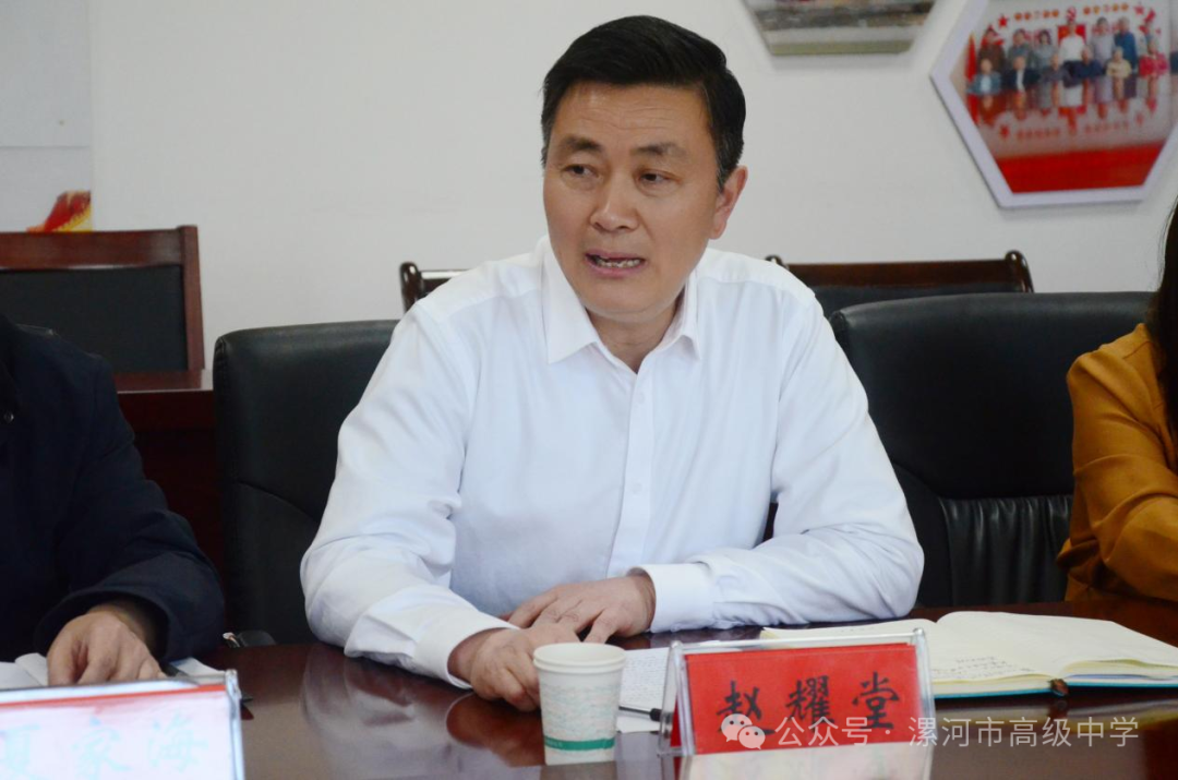 会上,赵耀堂首先代表漯河高中对河南大学各位领导的莅临进行了欢迎致辞,同时介绍了漯河高中学校历史、师资状况、办学成绩等情况,并就实习就业工作发表建议。