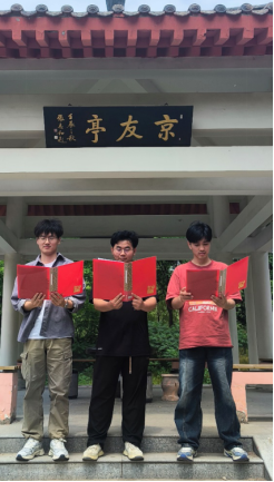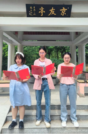 后面的京友亭,进行诗歌朗诵。党员们依次朗诵了李大钊、鲁迅等“五四运动”时期的著名诗歌,诗句激昂、铿锵有力,引人深思。同学们在朗诵时不仅领略到了五四时期青年们的豪情壮志,也体会到了诗歌的力量,进一步激励大家砥砺前行,奋发图强。
