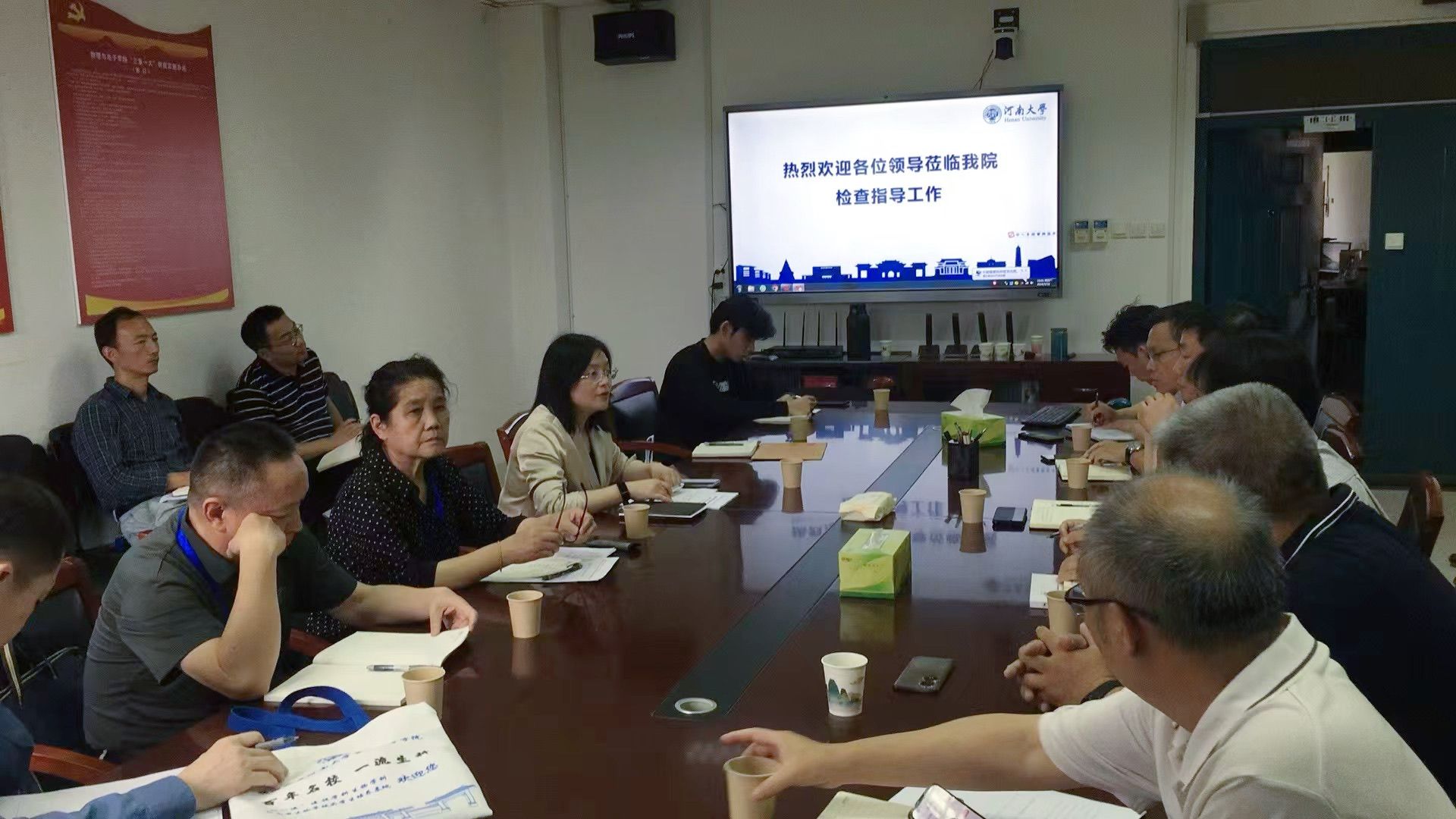 为进一步规范本科教学秩序,深化“学生中心”“两性一度”“课程思政”教学理念,并扎实推进本科教育教学审核评估工作,2024年5月16日,河南大学教务处副处长张琨一行6人莅临spbo完场比分 进行期中教学检查并部署推进本科教学审核工作。spbo完场比分 班子成员张慧、李国强、刘寒冰、魏高明、李新营、刘名果,以及院本科教学督导组、各系主任、教务办主任参加会议。