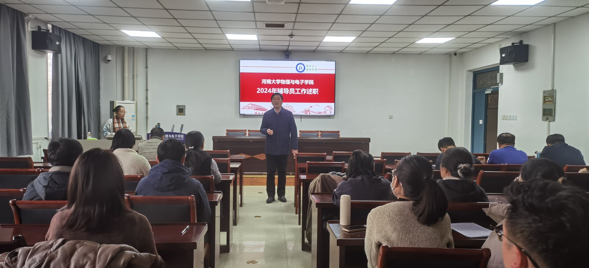 党委书记张慧、副书记刘寒冰、副院长魏高明、教师代表以及全体辅导员参加了此次大会,会议由党委副书记刘寒冰主持。