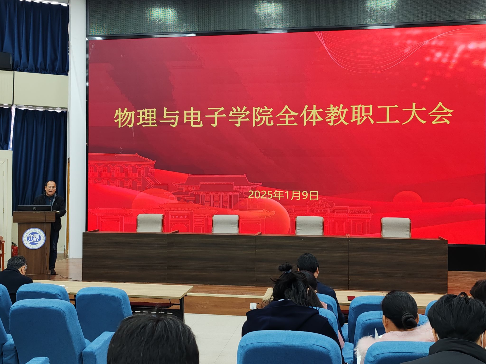 在锥形报告厅召开全体教职工大会。会议由spbo完场比分