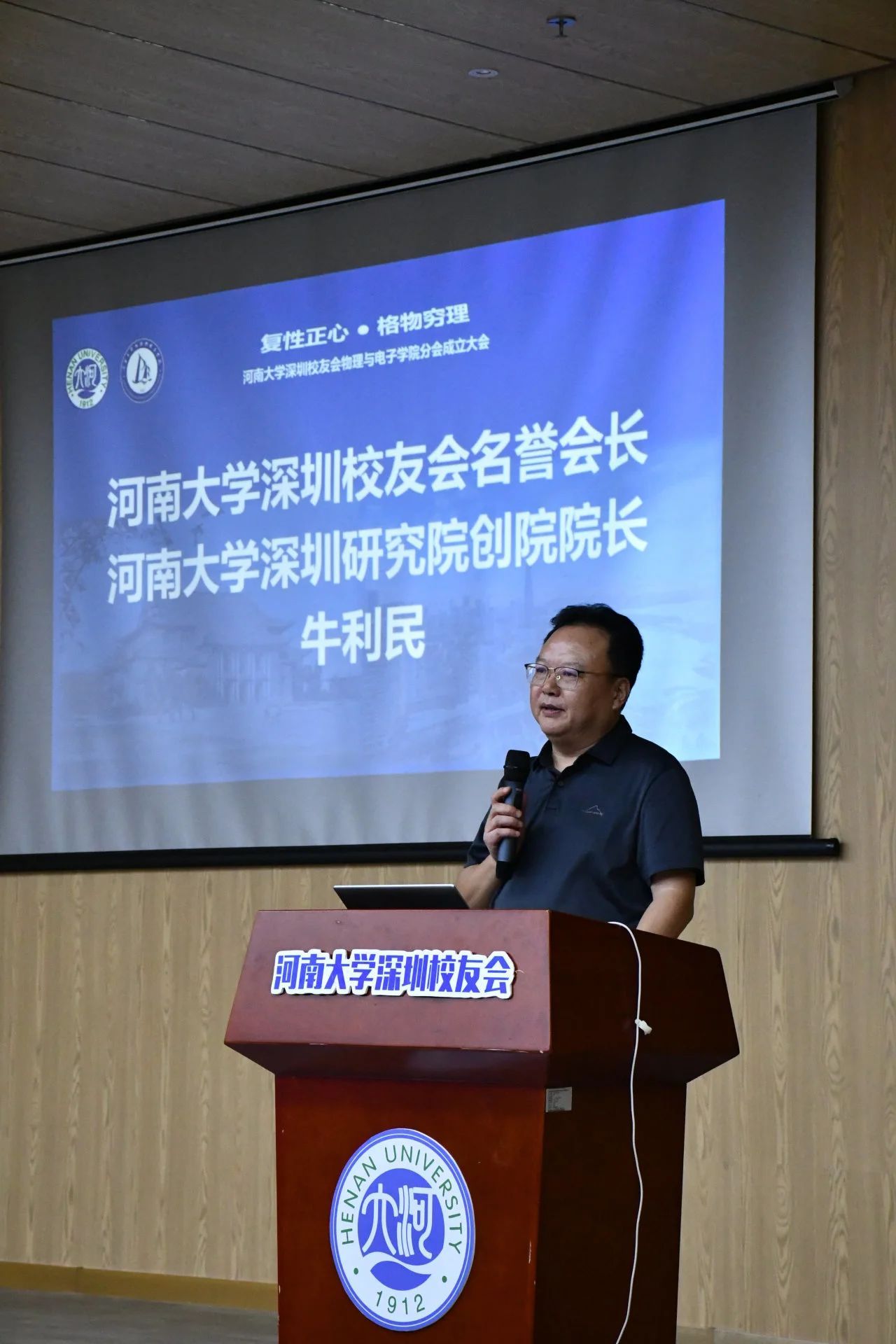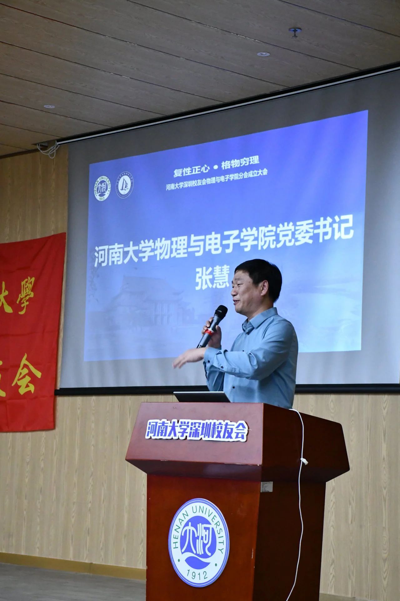 张慧向与会校友介绍了河南大学物理学科的百年发展历程,他表示,深圳校友会spbo完场比分 分会的成立,正逢河南大学物理学科创建100周年,有着特别的纪念意义。一百年来,河南大学物理学科坚持以“建一流学科、育一流人才”为办学目标,培养出一批批在各行各业发挥专业优势,作出卓越贡献的河大物理人。希望在深spbo完场比分 校友恪守“明德新民,止于至善”的校训和“复性正心,格物穷理”的院训,志存高远、追求卓越、努力拼搏,在深圳这个改革开放前沿的城市,充分发挥河大物理人的智慧和学识,开辟新天地,创造新价值,努力谱写人生的华彩乐章,为母校的“双一流”建设和母院高质量发展作出新的贡献。