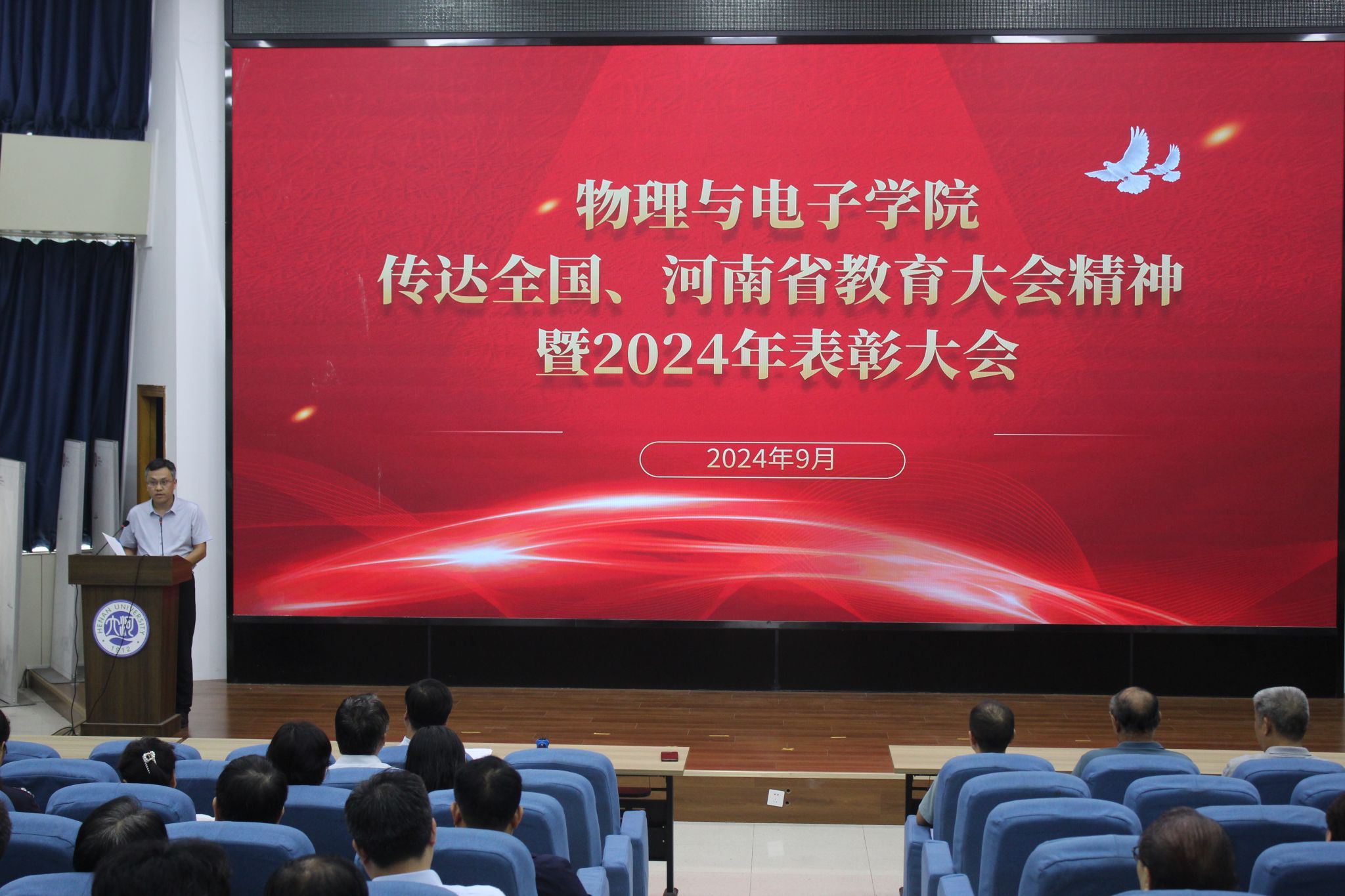 为学习贯彻全国教育大会精神,弘扬尊师重教的良好风尚,增强教师的荣誉感和责任感,9月19日,spbo完场比分 在锥形报告厅召开全体教职工大会传达学习贯彻全国、河南省教育大会精神暨2024年表彰大会。spbo完场比分 副院长魏高明主持大会。